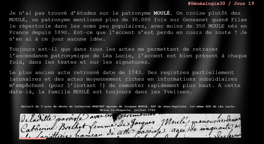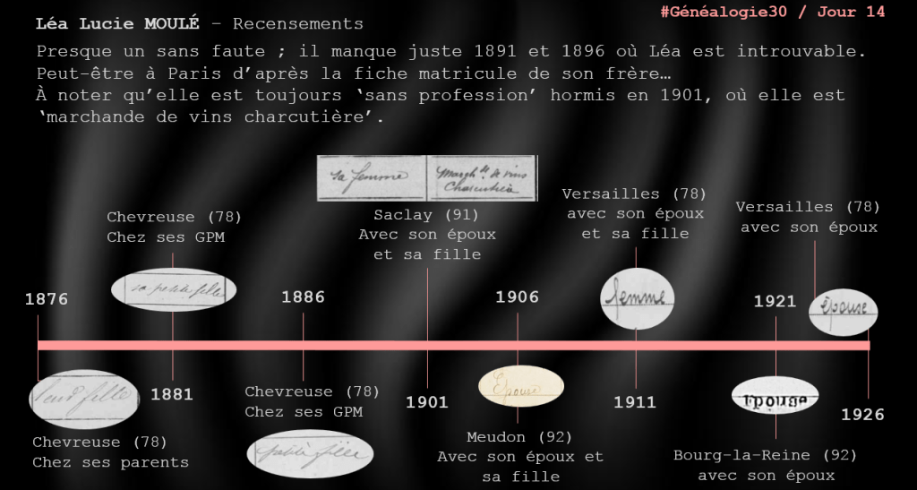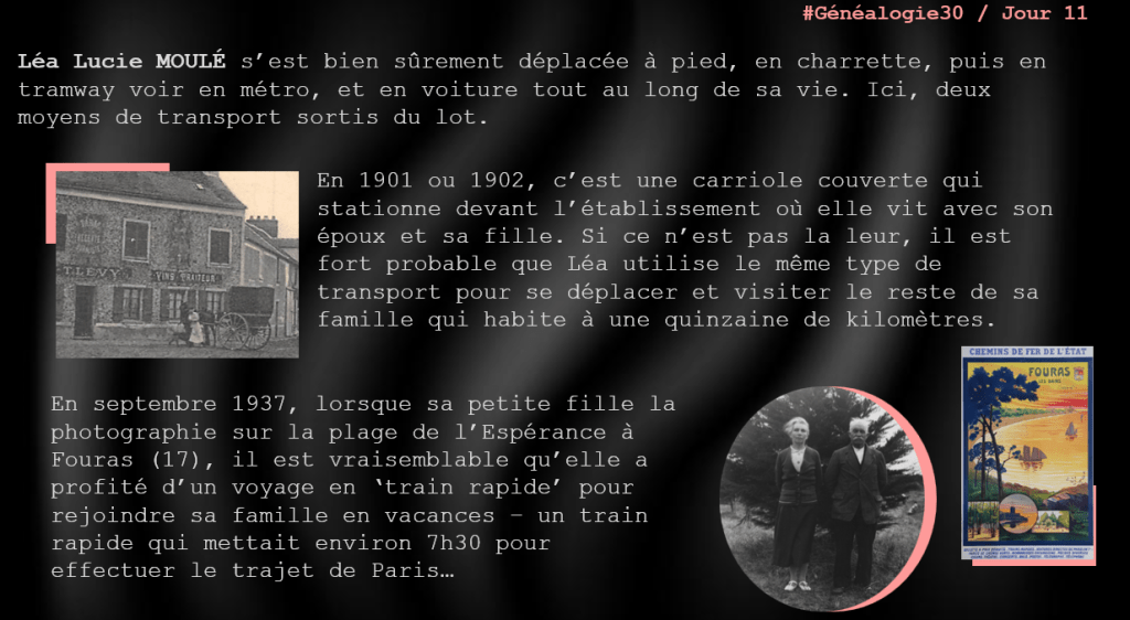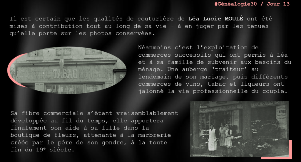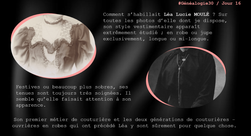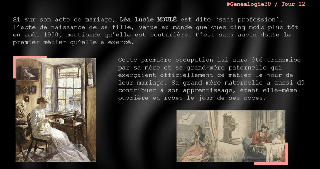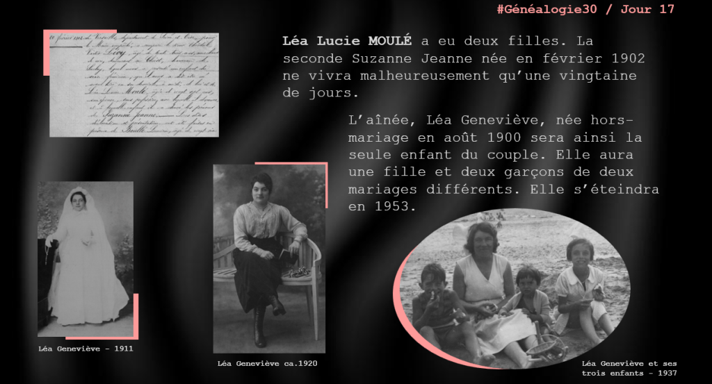 Voici la suite du Challenge #Généalogie30, ou le voyage à travers la vie de Léa Lucie Moulé, mon arrière-arrière- grand-mère. Pour revoir la première partie ou repasser par la boussole c’est par ici.
