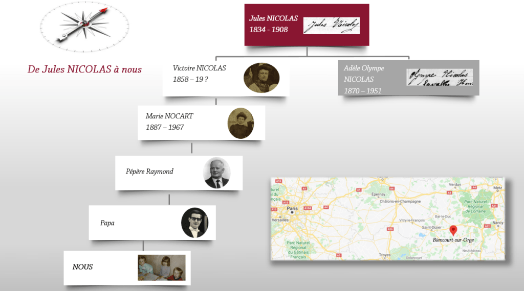 Nous sommes en 1870 à Biencourt dans la Meuse. Jules a oublié son activité de mineron pour la journée. Son épouse a mis au monde Adèle Olympe qui a poussé son premier cri à 14h.