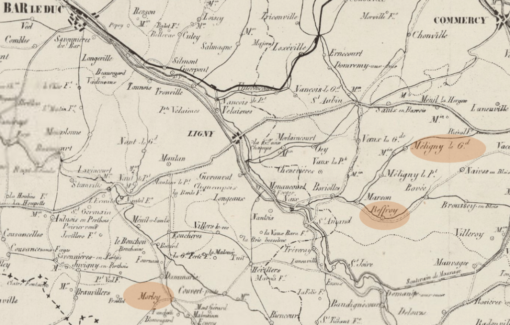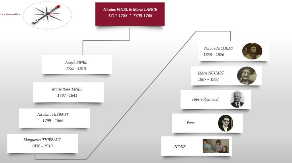 Nous sommes dans la Meuse, à Morley plus précisément en ce lundi 14 février 1735. Nicolas FINEL, le charpentier, fils de Pierre et de Louise GUILLEMIN s’apprête à joindre son destin à celui de Marie LANCE. Si la filiation de Nicolas est bien claire et sourcée, il en va autrement pour celle de Marie. Celle-ci est en effet la fille de Claude et Marie MICHEL sur son acte de mariage, et l’âge sur son acte de décès correspond bien, mais tiens donc, elle est la fille de Jean et de (la même ou une autre ?) Marie MICHEL sur son acte de baptême. Je viens juste de noter cette anomalie – comme quoi il est toujours bénéfique de participer à un challenge ! Une recherche rapide sur nos sites favoris m’informe que cette bizarrerie est dupliquée sur la grande majorité des arbres ; les rares exceptions qui ont aussi dû s’apercevoir qu’il y avait un loup (ou un renard diront certains) ont laissé la naissance en point d’interrogation, mais n’ont à priori pas trouvé d’autre acte. Je rajoute donc à ma to-do list cette vérification à creuser, je n’y ai jamais ajouté tant de tâches que depuis que je participe à des défis généalogiques… Le mariage étant ce qui nous intéresse ici, et les âges correspondants parfaitement, nous allons considérer dans un premier temps que c’est monsieur le Curé, emporté par la joie d’une naissance ou par un peu trop de vin de messe, qui a confondu les deux frères, Jean et Claude, en plus mariés tous deux à deux filles MICHEL. En ce jour Valentinesque, Marie a vingt-six ans et Nicolas en a vingt-quatre. Huit enfants vont naître de cette union, quatre garçons et quatre filles, dont deux quitteront ce monde en bas âge. Toutes les naissances ont lieu à Morley où le couple s’est sans aucun doute installé. En revanche, c’est à Méligny-le-Grand à une vingtaine de kilomètres, que nous les retrouvons à l’occasion du mariage de leurs enfants dès 1759, et jusqu’aux dernières années de leur vie. Marie s’y éteindra en 1765 âgée de 57 ans, et Nicolas la rejoindra pour l’éternité vingt ans plus tard.