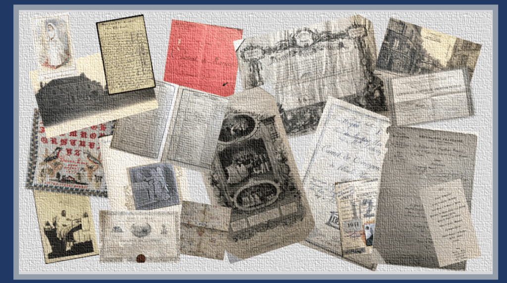 Après une période de flottement quant à ma participation, j’ai finalement transposé ce format court sur des documents. Ainsi, les précieux 26 témoins du passé que je vais vous présenter cette année ne sont pas forcément exceptionnels, mais ils ont cette particularité qui n’a pas de prix : avoir traversé le temps jusqu’à nous. Ce sont pour moi de véritables petits trésors, surtout quand j’imagine qu’ils auraient pu disparaître lors d’un déménagement ou d’un décès ; certains ont d’ailleurs été rattrapés à la dernière minute, sauvés in extremis d’un ultime voyage vers les encombrants…