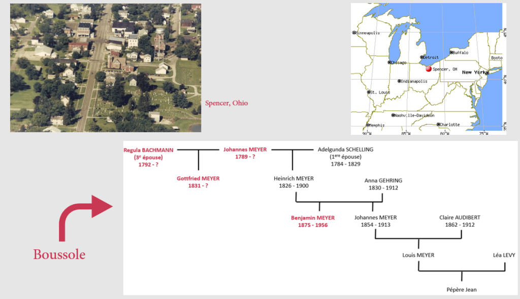 Grosse dispersion géographique pour finir la semaine puisque nous traversons l’Atlantique, petite dispersion dans mes recherches de l’année, qui aura duré à peu près une semaine. « Tu connais ça ? » m’envoie mon cousin Benjamin au printemps. Le message était accompagné d’une photo de la tombe de notre arrière-arrière-grand-oncle, Benjamin MEYER, le frère de celui que nous appelons notre ancêtre suisse, Johannes. Bien sûr que « je connaissais ça ». Comme évoqué à la lettre S, j’avais déjà récapitulé dans mes recherches que tous les frères (sauf l’aîné) de Johannes étaient partis chercher fortune aux Etats-Unis et Benjamin, le petit dernier de la fratrie de onze, n’a pas fait exception. Benjamin MEYER est né en 1875 à Rüdlingen, il a émigré aux Etats-Unis autour de 1893, et s’est éteint en 1956 à BATAVIA dans l’Etat de NEW-YORK, après avoir vécu à ROCHESTER, dans le même état.  D’échanges de messages en transferts de documents, j’en viens à proposer (mais quelle idée aussi…) à Benjamin – mon cousin, pas notre collatéral… – de travailler un ChallengeAZ à quatre mains sur nos ancêtres et collatéraux ayant émigré outre-Atlantique. Notez bien sa réponse « Ouais carrément ! ». Je fournis la copie d’écran pour preuve sur simple demande. Je décidais alors d’aller faire un tour aux USA et de m’occuper non pas des collatéraux, mais de celui de nos ancêtres qui pris place à bord d’un navire baptisé SPLENDID pour rejoindre la terre promise, un autre Johannes MEYER, né en 1789, le grand-père de notre Johannes dit l’ancêtre suisse.