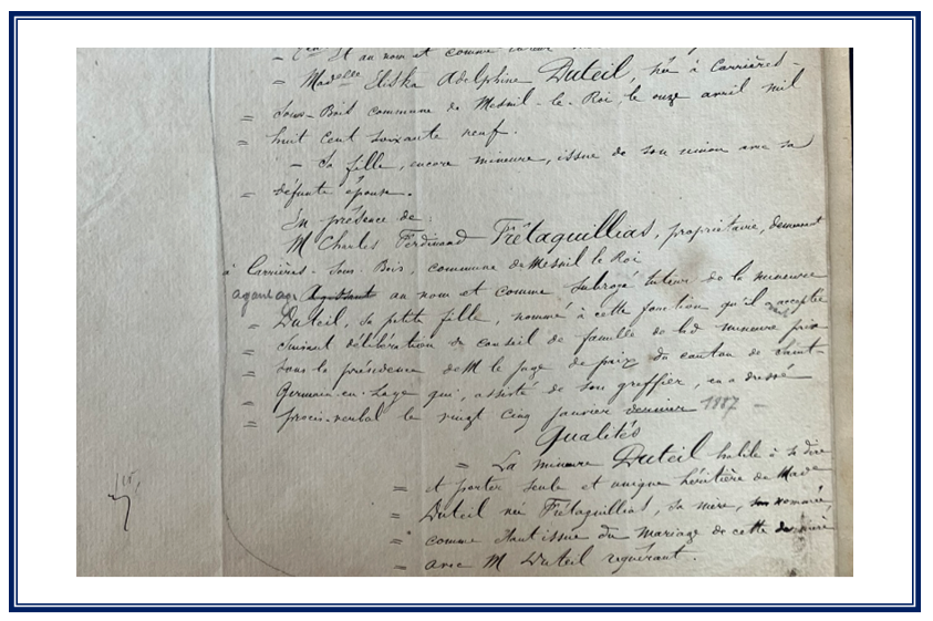 Archive : Inventaire après décès de Madame Ernestine Antonine FRETAQUILLIAS épouse DUTEIL, à la requête de Monsieur Ernest Louis DUTEIL, cultivateur, son époux. Le 5 février 1887.