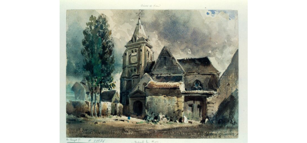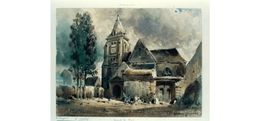 Mesnil-le-Roi, vue de l’église par Hubert Clerget (1818-1899) – Gallica