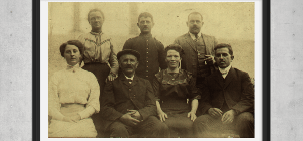 Nous revoici du côté de notre branche paternelle, avec cette belle photo de groupe. Au premier rang habillée d’une robe sombre on retrouve Louise Ponsignon,